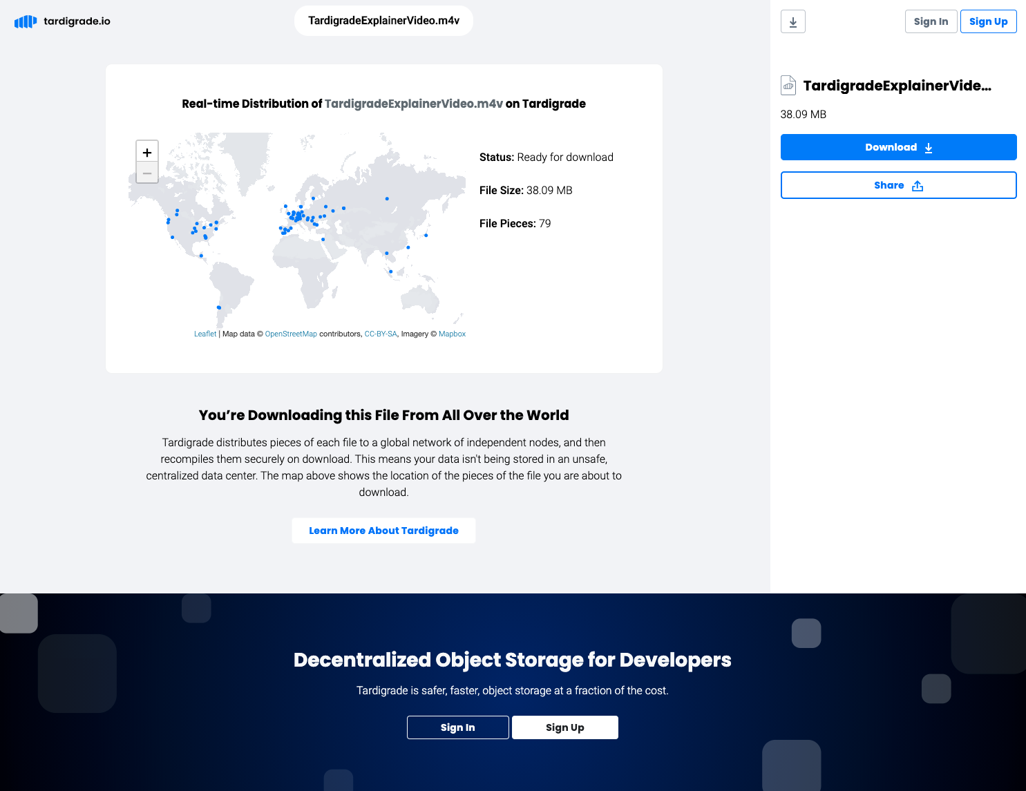 Through this tool—which is called the Linksharing Object Map—our team and our community can visualize the geographic distribution of data uploaded to our Tardigrade service. This showcases how resilient the network is, as well as the wide geographic distribution of Nodes holding each object.
